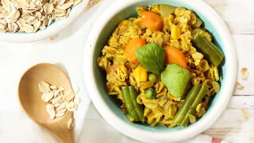 This nutritious and delicious dish is perfect for busy mornings, providing the health benefits of oats. A dash of tomto ketchup or Schezwan sauce can enhance the flavour of this dish if you do not prefer the good old Indian mango or lime pickle.