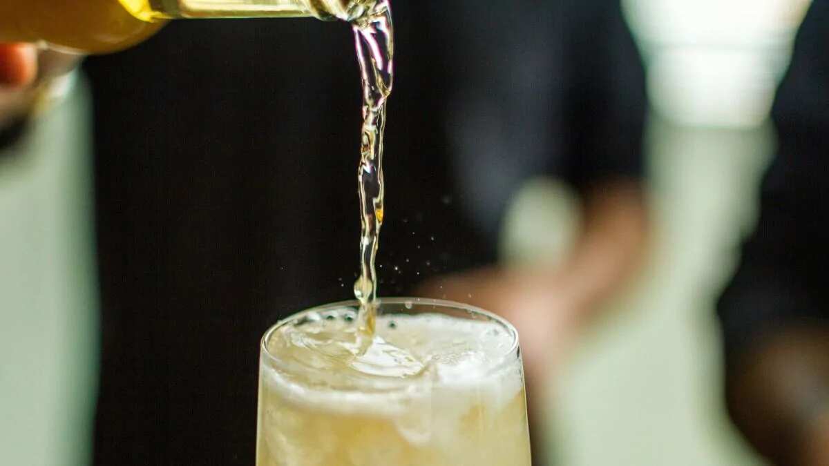 - In a flute glass, add 45 ml non-alcoholic sparkling cider. Next, layer this with 30 ml chilled dry stout by adding the beer into the glass over the back of a spoon. Once the drink appears adequately creamy and foamy, garnish with an orange wedge.