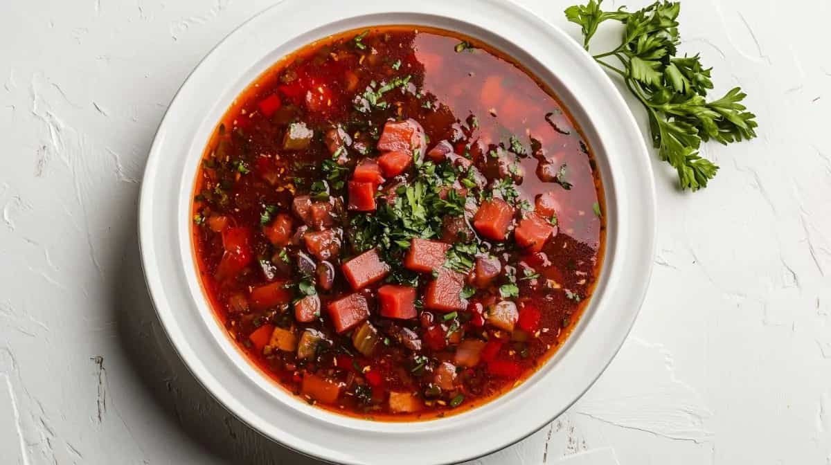 Shorba traces its origins to the culinary traditions of the Middle East and Central Asia, where slow-simmered broths formed the foundation of daily meals. The word comes from the Arabic “shurbah,” which simply means “soup,” and the earliest versions were straightforward mixtures of meat, water, and a few aromatics cooked long enough to extract depth without complexity. Indian Spiced Beetroot Shorba provides a comforting and mildly spicy version of beetroot. The flavour blends mild spice that develops gradually with the inherent sweetness of the vegetable. Beetroot is first prepared by cooking it in enough water to allow the colour to intensify. After it is tender, it is smoothed out and returned to the saucepan with spices like coriander powder, chilli powder and turmeric. The soup retains its earthy, clear flavour– it is ideal for those who want an easy drinking broth with vibrant flavour.
