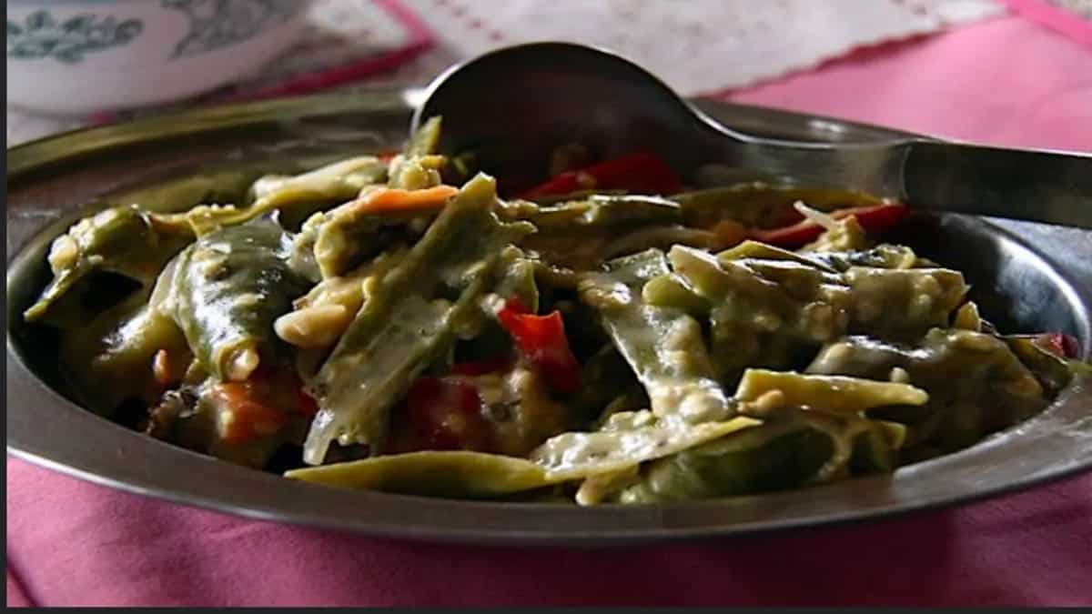 Semchung Datshi, a variant of Bhutanese Ema Datshi, features beans immersed in a creamy cheese sauce. Tender beans, like green beans or yardlong beans, are simmered with Bhutanese cheese, creating a rich, velvety texture. The result is a harmonious blend of creamy flavours that highlights the natural sweetness of the beans. Semchung Datshi is typically enjoyed with red rice, offering a comforting and satisfying taste of Bhutanese culinary tradition.