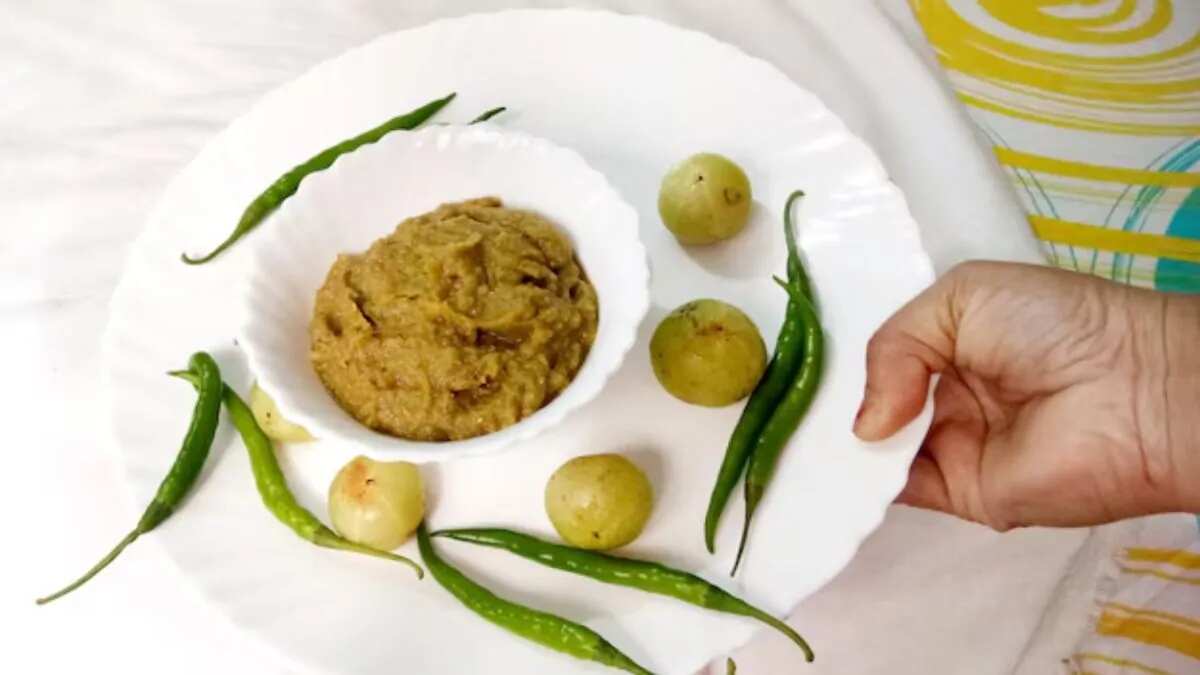 Amla, which means nourishing soul in English, is a staple in Ayurvedic medicine, which is loaded with vitamin C. To blend it into a chutney, boil amla with some water in a pressure cooker. Separate their seeds and cut them into small pieces. Now, in a food processor, create a smooth paste by blending it with water. Then saute some mustard seeds, cumin seeds, asafoetida, and curry leaves. Next, add the ground amla, tbsp jaggery, turmeric (haldi) powder, red chilli powder, and salt to taste. Mix everything to combine well and cook for a few minutes until the flavours meld. Garnish it with coriander and serve hot.