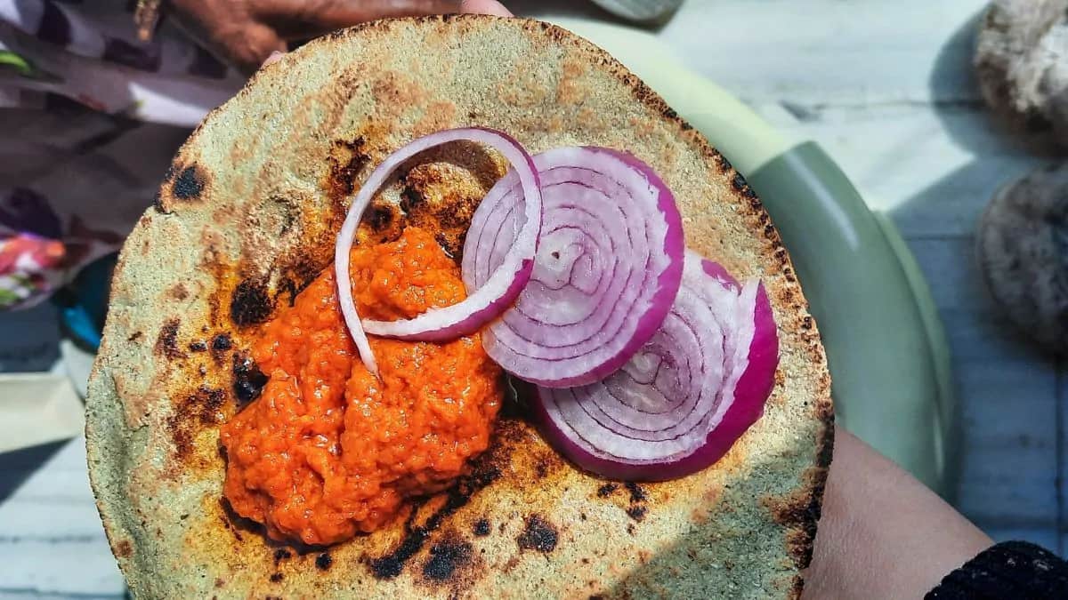 Similar to cutlets or vada, the dhebra is a Gujarati preparation that is made using fresh methi, spices and millet flour to be shallow or deep-fried. Eaten as a snack or as a light meal, the fritters are served with a side of curd—which highlights their crispy-soft textures. Leftover dough from the preparation is also rolled out into flatbreads and consumed in a roti-like form, for a less oil version of the delicacy. Some variations of the preparation also serve the fritters with stuffed Bhavnagri chillies or the Kathiyawadi bharwa mirchi, for a spicy contrast.