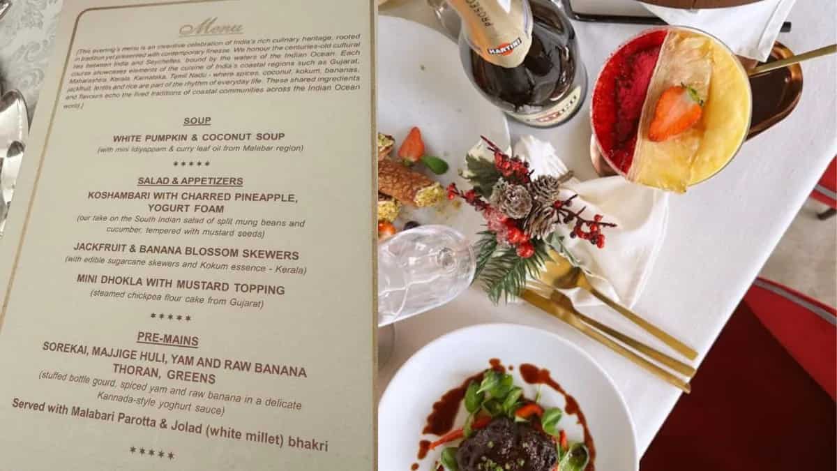 The main course was a masterclass in regional balance. It featured Batata nu Shaak from Gujarat, Udupi Brinjal Sukka from the south, and a Paneer Tellicherry that fused a familiar protein with the bold peppercorns of the Malabar coast. Perhaps the most comforting inclusion was the Mushroom and Dal Varan, a Maharashtrian staple of lentils tempered with ghee and served over Sona Masuri rice. While the internet might mock the small portions or the artistic smears on the plate, the flavour combinations were grounded in centuries of tradition. The inclusion of fiery condiments like Gongura pickle, Mango Chunda, and Beetroot Pachdi ensured that the heat and tang essential to the Indian palate were never compromised. The critics who suggest that these meals leave guests hungry might be overlooking the density of these ingredients. A meal featuring millet, lentils, and yam is anything but light on the stomach, regardless of how delicately it is plated.