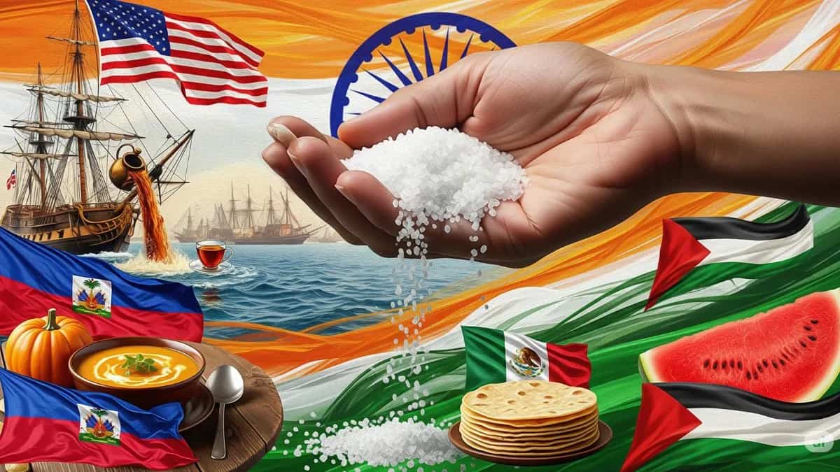 ON A SALT-STUNG MORNING in 1930, Mohandas K Gandhi bent down on the Gujarat coast, scooped a fistful of saline crystals, and held them aloft — not as seasoning, but as defiance. In that moment, salt was no longer just the stuff of kitchens; it became the grainy, unyielding emblem of India’s push for independence. In the long arc of India’s freedom struggle, food was never just sustenance. It could be a whisper passed hand to hand, a march against monopoly, or a sweet remade in the colours of a new nation. And India is hardly alone: around the world, dishes, ingredients, and even entire meals have doubled as banners, passwords, and tools for organising. What we eat can be protest, and sometimes, it can be the revolution itself.
