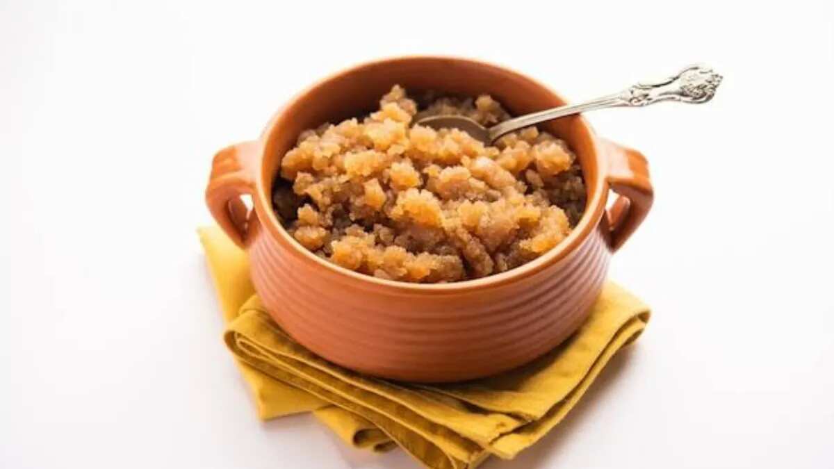 To make it at home, take some ghee in a heavy pan and heat it on a low flame. Add an equal quantity of wheat flour and keep stirring. The flour will change colour and smell nutty after ten to twelve minutes. In another pan, mix sugar and water and bring it to a boil. Once the sugar melts, add it slowly to the roasted flour. Stir well so that lumps do not form. Cook it until it thickens and the ghee starts to separate. It tastes best when eaten warm.