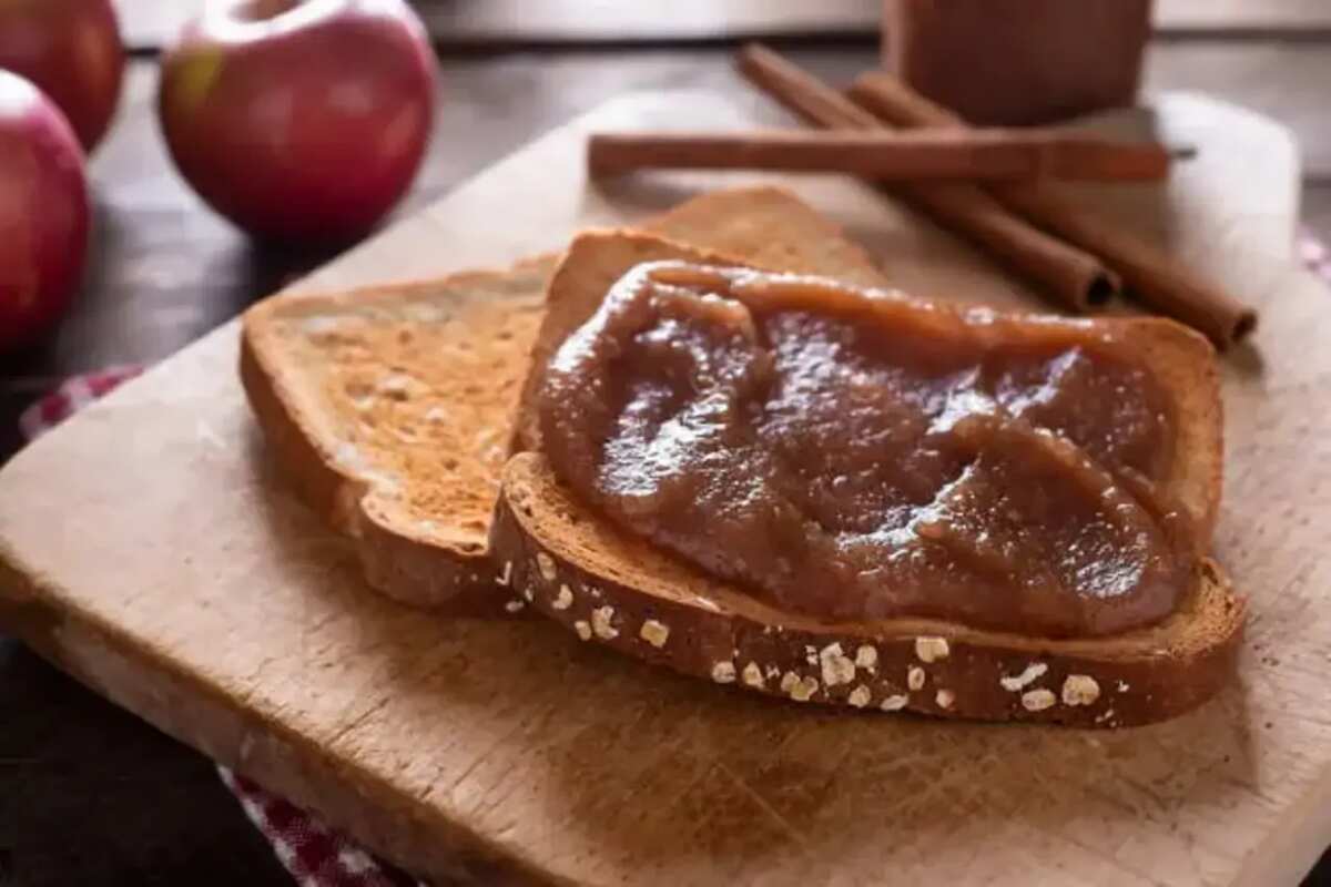 Apple butter is a spreadable preserve that is created by slowly boiling apples with allspice, cloves, cinnamon, and nutmeg. Long-term low-heat cooking caramelises the apples, concentrates their flavour, and gives them a spreadable consistency. The distinctively smooth texture of apple butter is then achieved by milling, pureeing, or blending the cooked apples.