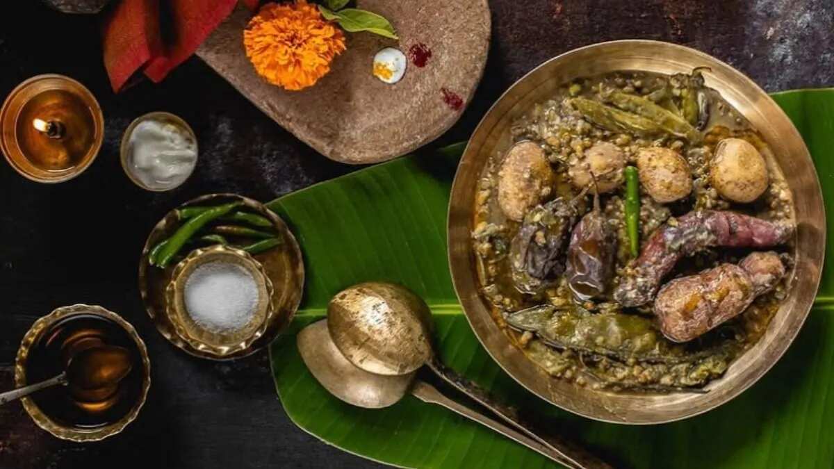 Certain materials are necessary to infuse this dish with authentic flavours. Whole green moong dal (lentils) and six types of vegetables—sweet potatoes, baby eggplants (brinjal), green peas (with pods), hyacinth beans (sheem), baby spinach, and potatoes—are the main ingredients. To keep the notes and texture balanced, use equal amounts of each vegetable. Basic seasonings like salt and green chillies are added for taste in addition to these essential elements. To further improve flavour, some families can pour mustard oil over food before serving.