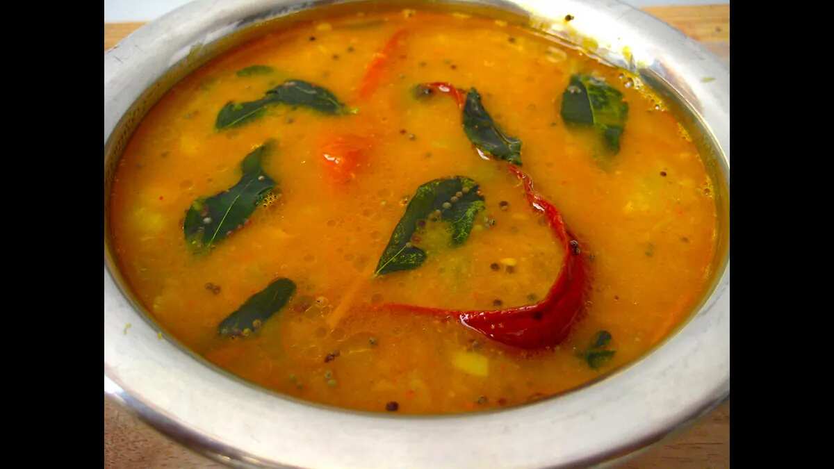 The Karnatka version is usually sweeter than other sambars due to the addition of jaggery. Coconut-based sambar masala goes into it, making it slightly richer. It is best paired with idli or rice.