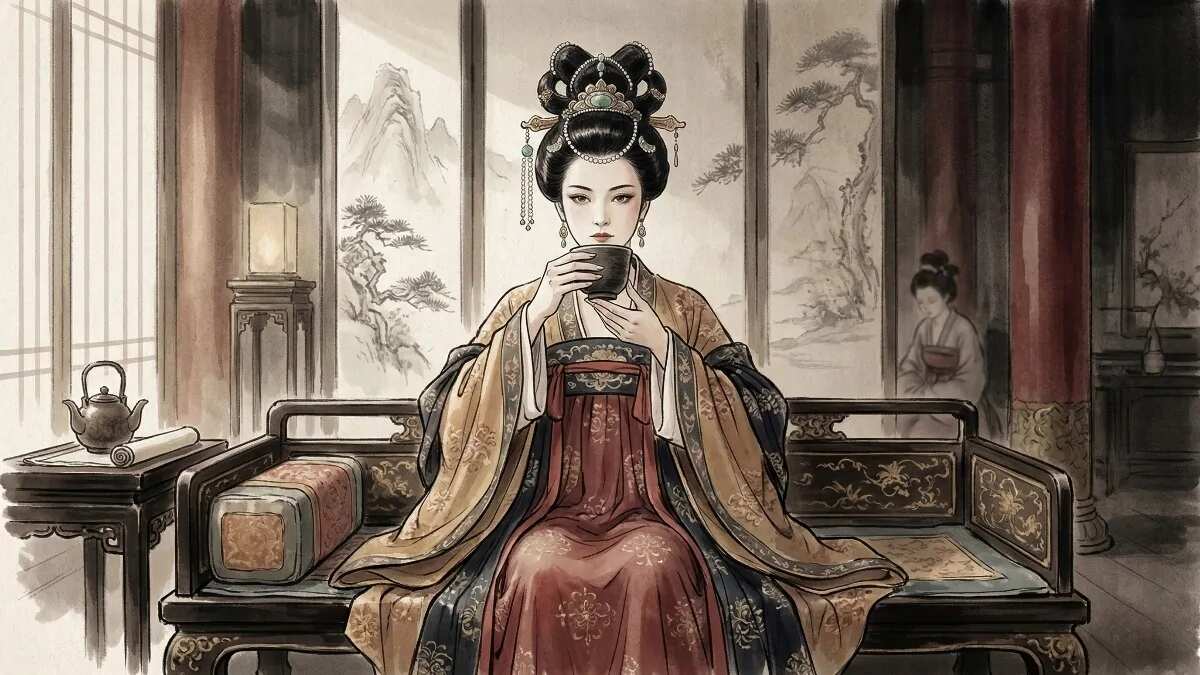 She does not die. The cup was vinegar — sharp, sour, and very much not poison. The Emperor had bluffed, and Lady Fang had called it. From that moment, the story goes, chī cù — literally, "eating vinegar" — became the Chinese expression for romantic jealousy. And over thirteen centuries later, it still is.
