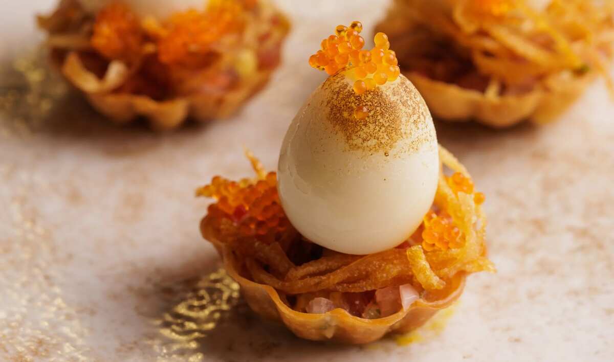 The Thirty-Layer Truffle Latke is one such example — visually impressive, indulgently crisp, and subtly aromatic with truffle, it anchors the meal with both technique and soul. It reminds you of a mille feuille while celebrating the humble potato incredibly well. The Quail Egg Roe Tart, compact but brimming with umami and creaminess, speaks to the chef’s eye for detail and texture. It also alludes to the fact that many Punekars traditionally feast on boiled eggs, crispy snacks and umami chutneys while drinking with friends.