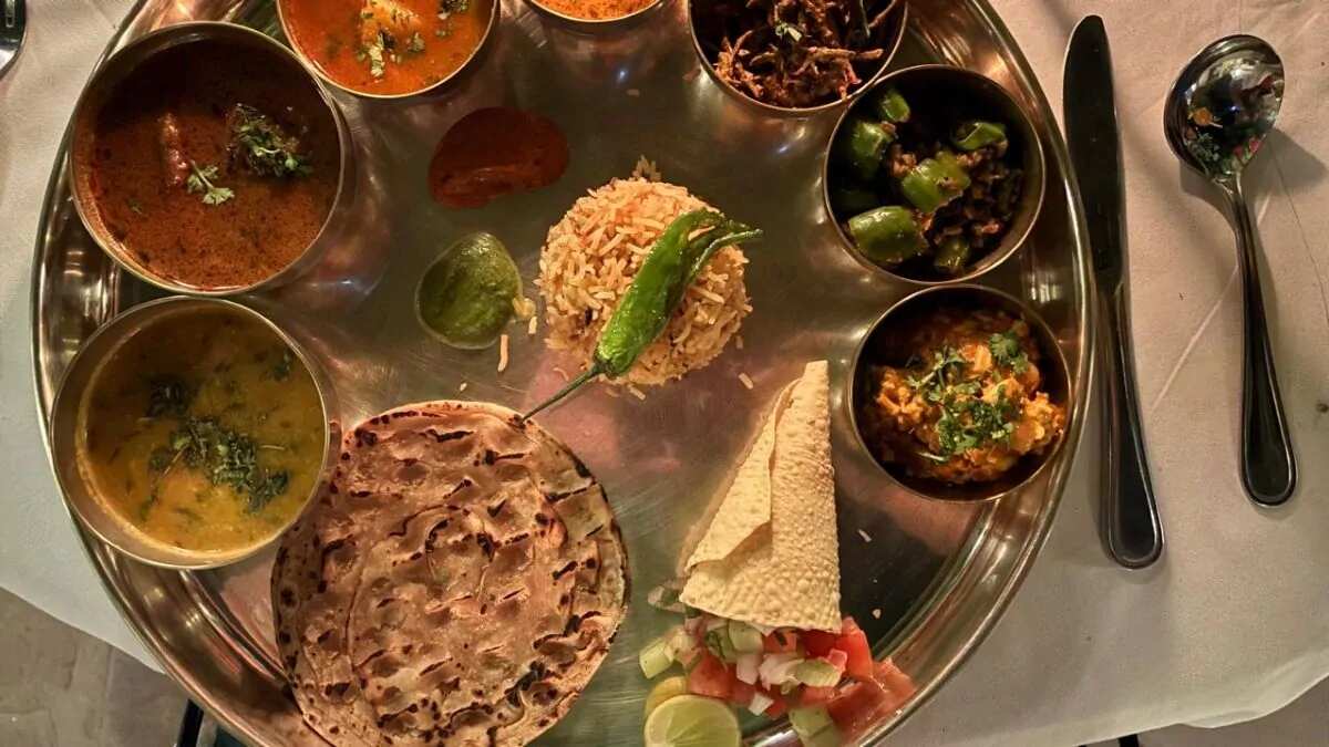 Rohet Garh has maintained its Marwar and Rajasthani heritage while showcasing the cuisine to its guests. You’ll be having double servings of large chillis with soaked methi or fenugreek seeds and rabodi ki sabji, which are pasta-like sheets of buttermilk and maize flour that are dried like papads and cooked in a buttermilk or curd gravy with turmeric, chilli, and asafoetida, during one of the dinners. As part of the cookbook by the late Jayendra Kumari, the thali also has the lal maas and safed maas that are so popular among non-vegetarians.