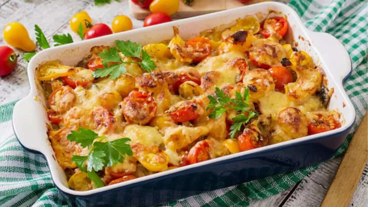 Pick the vegetables of your choice, grate some and chop a few. Layer these veggies and season them with a drizzle of olive oil, salt, pepper, and a few spices of your choice. On the top, spread grated cheese and cover the bowl with a foil. While the ingredients bake for 15 minutes, spread garlic butter on bread slices and toast them. Garlic bread and vegetable au gratin are perfect partners to satisfy your hunger pangs.