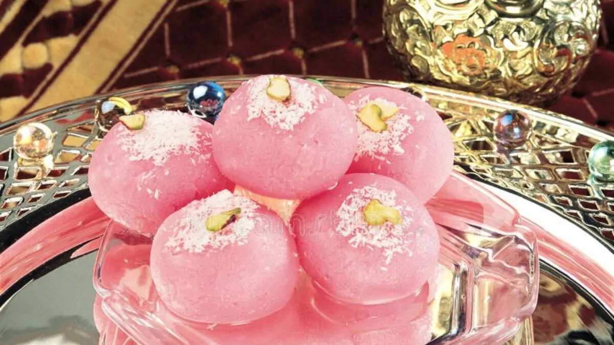 Rose Laddoo: Coconut or milk powder laddoos flavoured with rose water and coated with dried rose petals. These sweets carry fragrance and colour while remaining simple and sattvic.