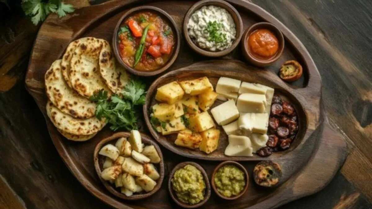 Flours made from water chestnut (singhara) and buckwheat (kuttu) are integral to Navratri cooking. A charcuterie board can showcase mini singhara rotis cut into triangles, kuttu puris fried crisp, and small portions of kuttu pakoras. To balance the heavier items, serve these with a fresh tomato and cucumber salad seasoned with sendha namak and lemon juice. Another element could be a yoghurt-based dip for pairing. This board highlights the versatility of fasting flours and offers a wide mix of savoury bites that look attractive when arranged neatly on a large wooden platter.