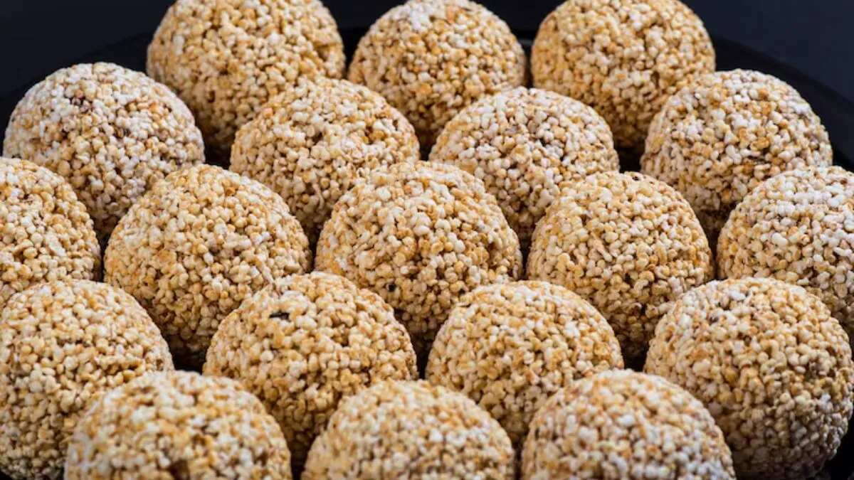 Rajgira ladoos are healthy, sweet treats prepared by mixing popped amaranth seeds in jaggery. It is a perfect quick snack during fasting, which is not only tasty but also rich in calcium and iron. The puffed rajgira is blended with warm jaggery syrup and then shaped to make small ladoos. These bite-sized ladoos deliver a satisfying crunch, and their natural sweetness helps in curbing sugar cravings without breaking fasting rules. They can also be stored well for a longer duration, making them a handy, energy-boosting snack throughout Navratri.
