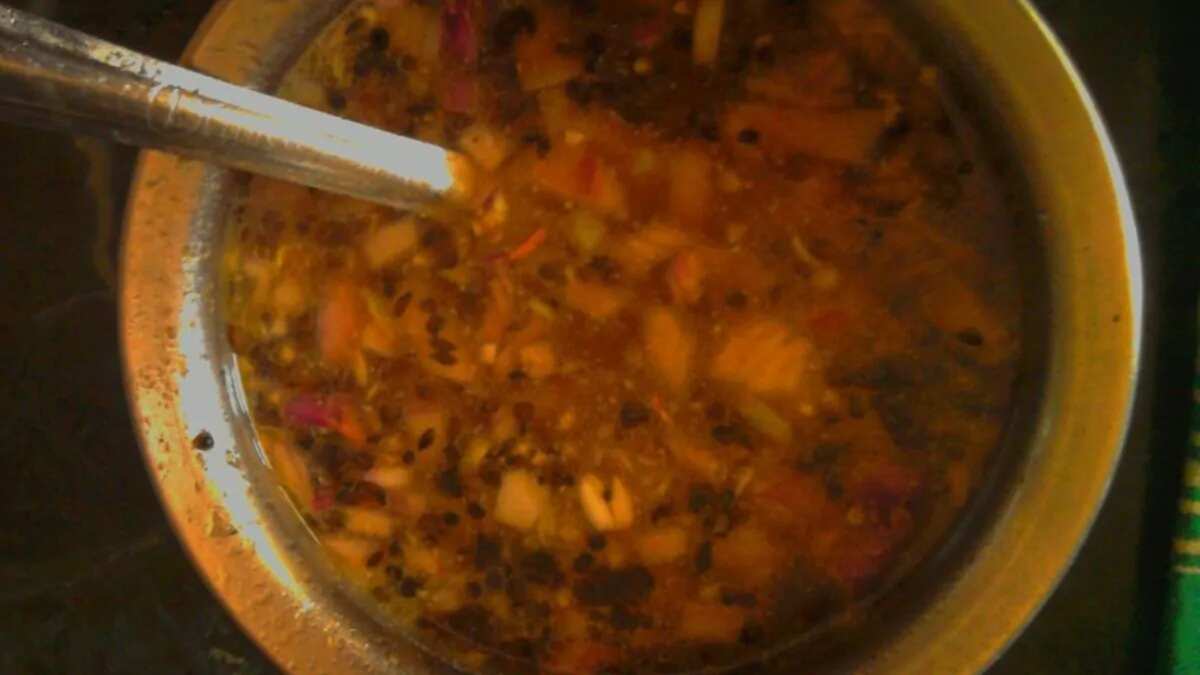 Pachi Pulusu benefits greatly from the texture and nutrients that fresh veggies provide. Finely chopped tomatoes, onions, and coriander leaves are frequently used as veggies. To ensure proper spread of the vegetables in the rasam, make sure they are all thoroughly cleaned and sliced into small pieces. Green chillies can be roasted directly over an open flame until their skins brown, adding another layer of flavour. Chop them finely after roasting and then add them to the dish.