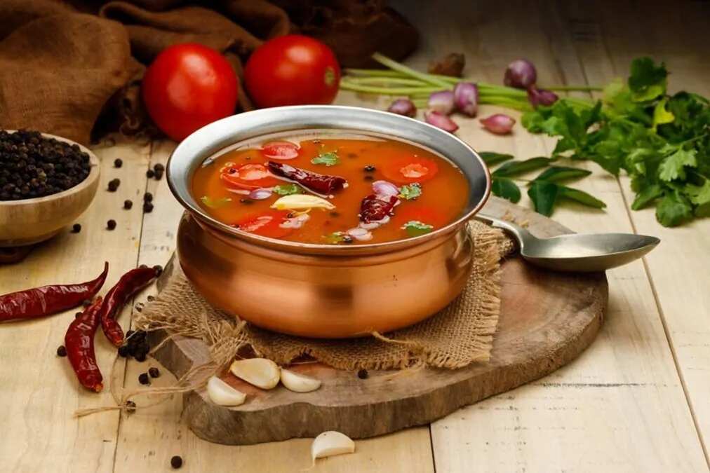 Rasam, derived from the Sanskrit word “rasa,” meaning juice or essence, has ancient roots in Indian culinary traditions. Its origins can be traced back to the southern regions of India, particularly Tamil Nadu. Rasam is attributed with incredible benefits and is also used as a remedy for various ailments—and has been since ancient times. It contains therapeutic properties, particularly the digestive benefits attributed to the combination of tamarind and spices, which makes it a go-to dish during illnesses or acts as a preventive measure for overall well-being.