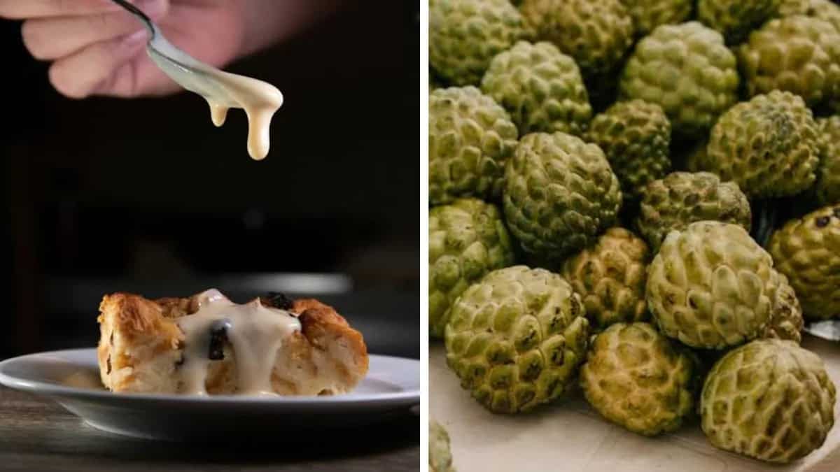 Bread pudding works well with custard apple because the pulp enriches the custard mixture. Use 3 cups loosely packed cubes of day-old bread, 1½ cups full-fat milk, 3 eggs, ½ cup strained custard apple pulp, ¼ cup sugar and a small pinch of grated nutmeg. Warm the milk lightly and whisk it with the eggs, sugar and nutmeg. Stir in the custard apple pulp. Pour the mixture over the bread and allow it to rest for about ten minutes so that the liquid distributes evenly. Transfer to a greased baking dish and bake at 160°C for 35 to 40 minutes until the top sets and the edges firm up. Allow the pudding to cool slightly so that the custard stabilises.
