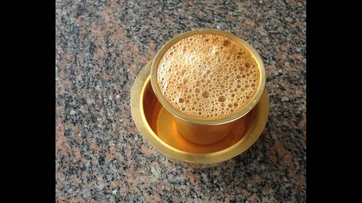 Often served black (kaapi without milk), sometimes infused with jaggery instead of sugar.