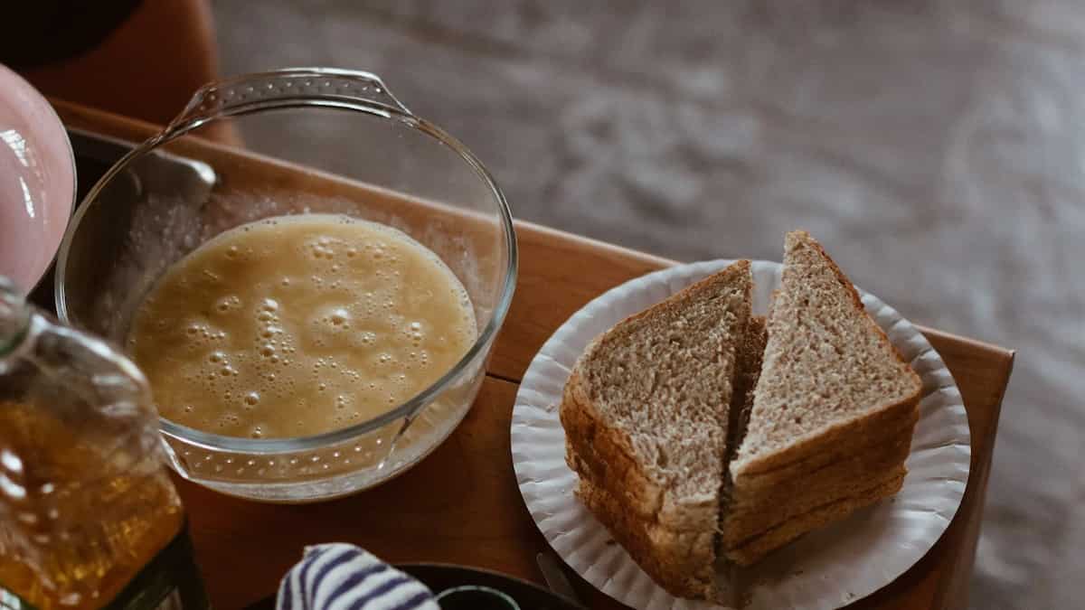 - Heat butter in a pan. Once it melts, dip the bread slice in the batter and place it over butter.