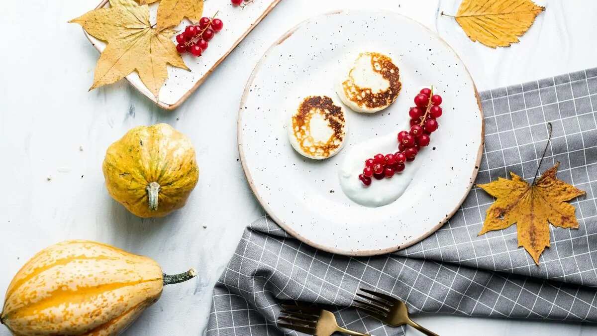 The classic breakfast staple gets an autumnal twist with the use of cooked pumpkin mixed into pancake batter, along with a whiff of pumpkin spice that makes these soft, fluffy pancakes extra flavourful. Serve them warm, with a generous drizzle of maple syrup and toasted walnuts for added texture. Experiment with a variety of mix-ins such as chocolate chips, nuts, freeze-dried fruit to introduce variations as per personal preferences. Make the plate extra festive with the inclusion of a homemade compote, made using seasonal fruits and brown sugar for a caramelised note.