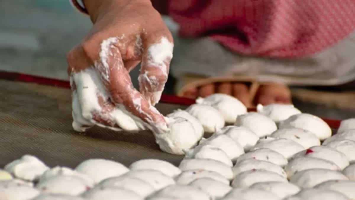 After that, the magical part begins. This is where the paste transforms into something alive. Women sit together, dipping their fingers in the bowl and beating air into the dal. The more you whip, the lighter it becomes. The batter rises, softens and nearly breathes. Every winter morning, hundreds of courtyards across Bengal would hear this sound– ‘thap thap thap’—hands hitting metal bowls, laughter rising, and sunshine streaming in. This stage appears simple, yet it determines everything. The aeration of the batter is critical to a successful bori. Too heavy? It dries rough. Is it too loose? It will not keep its shape. Getting things correctly is a talent that falls between art and habit. And right after this is the main ritual that has earned its place as what is called ‘bori biye.’