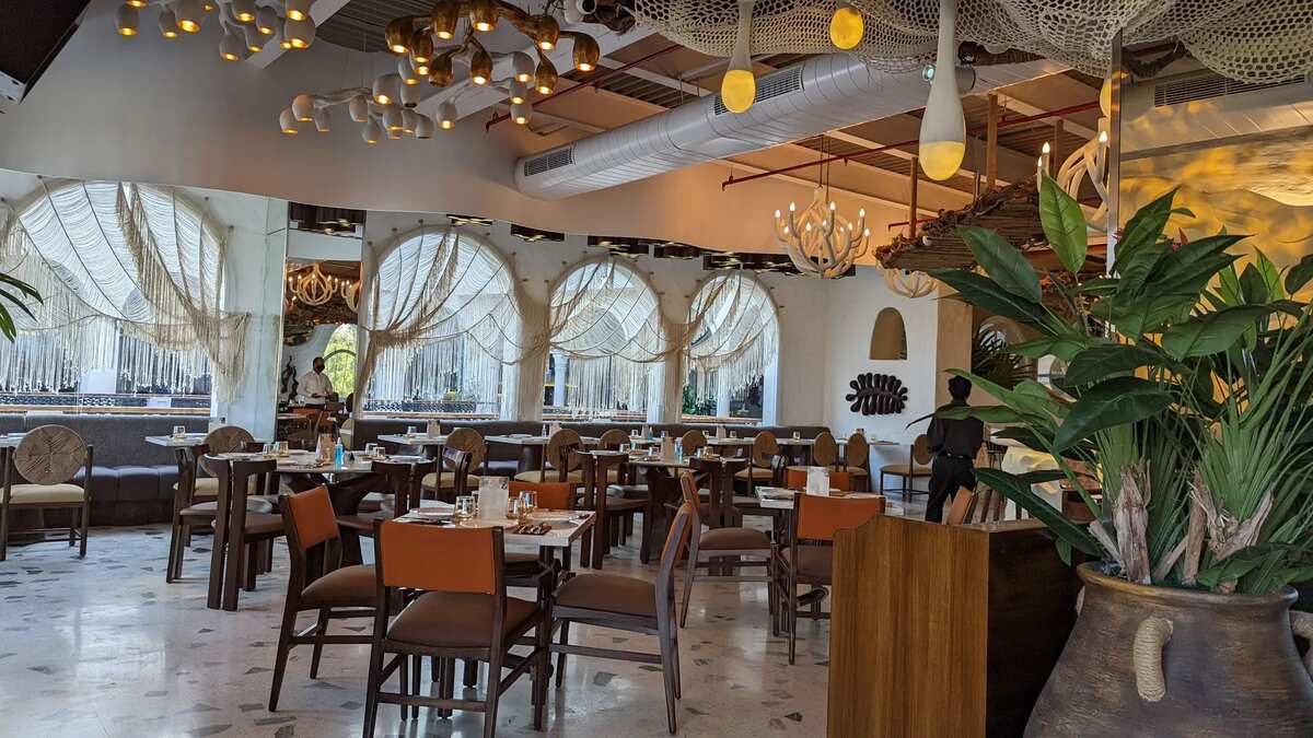 The place has been designed keeping the harmony of all five elements of nature- fire, water, earth, and air as they interact with the heritage of different countries, Bougie exudes a complete sensory treat, celebrating the senses of touch, vision, taste, sound, and smell all day long. One can see lava-like patterns at the bar, earthy woody feel on the furniture and so on. As you step in the unique drapes handwoven by the artisans of Delhi, mastering the art of Macrame is sure to catch your attention.