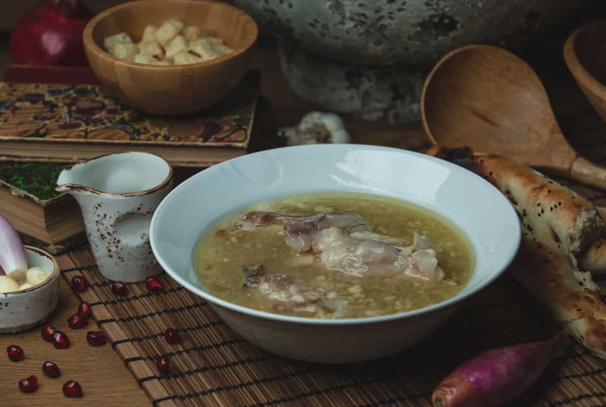 Khash is a centuries-old Armenian dish built entirely around bones and marrow. The broth is made by simmering cleaned bones for many hours until the marrow and gelatin fully release. The taste is mild, earthy, and deeply comforting, with richness coming purely from marrow rather than spices. It is traditionally eaten on winter mornings with garlic, salt, and flatbread added at the table. The simplicity allows the marrow's texture and warmth to take centre stage. Khash is valued not for complexity but for nourishment and tradition.