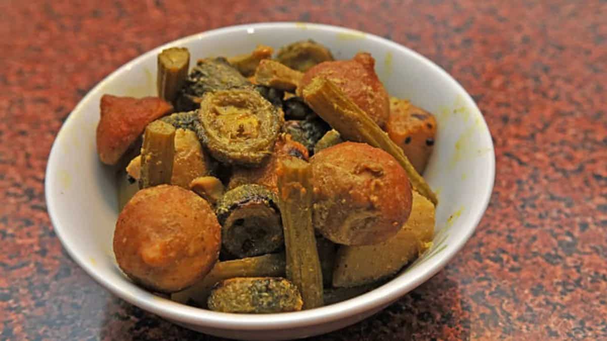Using the same ingredients, Bhangachora shukto is a fusion of fresh vegetables and chunks of fish. For this recipe, you can use heads of rohu, katla or pabda. What sets it apart? There is no use of any bitter elements but radhuni powder (wild celery seed) is a must. The texture has to be almost mushy with a heavy dash of onion and garlic.