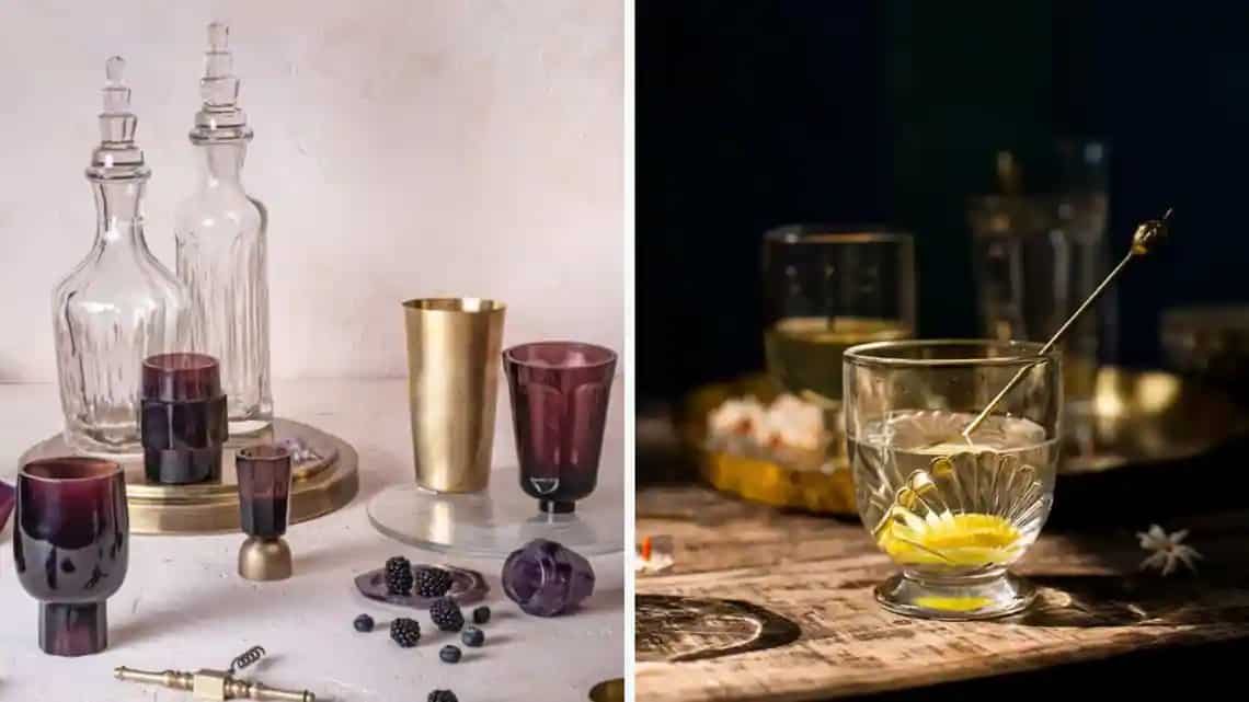 In the world of drinks, there are strict rules for serve ware, and it’s considered blasphemous to break them. This makes barware predictable—Old-fashioned glasses for whisky cocktails, Martini glasses for Martinis and tall glasses for high-balls. But, one can add a touch of whimsy with something handmade, vintage and sleek. Here are five brands for an elevated aesthetic experience at home: