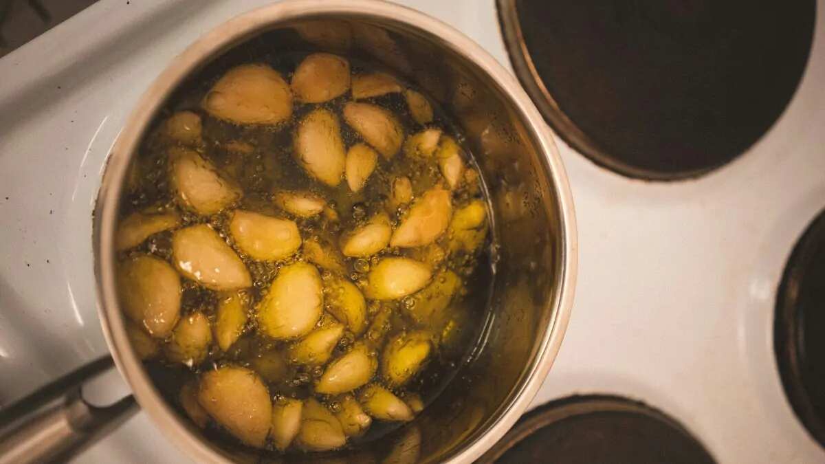 The vat containing the fat and food is generally placed over a heat source at low temperatures ranging from 120°C-135°C, which remains consistent throughout the process and breaks down connective tissue instead of extracting moisture. This helps meats and vegetables transform into tender soft ingredients with virtually no moisture loss, extending their cooking time to hours. While confit duck turns into shreds when pierced with a fork, garlic and tomatoes develop a desirable jammy texture which can then be used as a spread or garnish over other dishes.