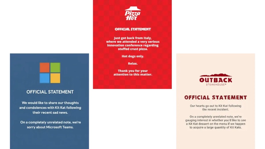 We would like to share our thoughts and condolences with Kit Kat following their recent sad news. On a completely unrelated note, we're sorry about Microsoft Teams.