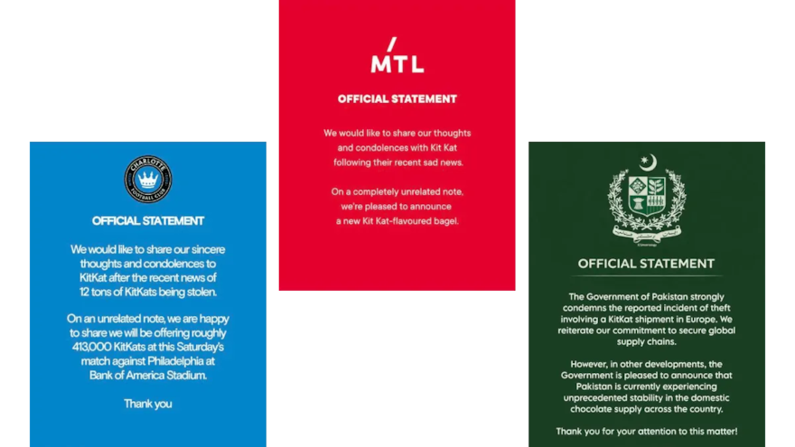 KitKat, to their considerable credit, took it on the chin with remarkable composure. They announced they "appreciate the criminals' exceptional taste," noted that the thieves had "taken the message too literally" with their famous have-a-break slogan, and helpfully informed the public that each stolen bar carries a unique batch code so retailers can verify if their stock came via, shall we say, unofficial channels. They also requested that nobody attempt to personally locate or recover the chocolate. Just in case anyone was planning to.