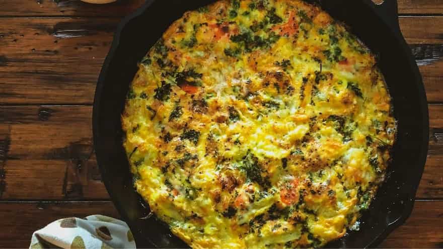 Leftover Roasted Veggies, Chicken And Dip Frittata