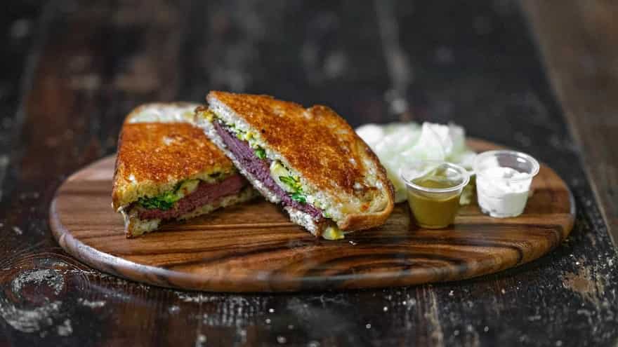 The fresh minty touch and sour, acidic quality of a classic mojito will undercut some of the earthy and spicy notes of the mushroom and pepper stuffing that goes into this sandwich. Add just a thin layer of mozzarella or Monterey Jack to lend the sandwich a more indulgent touch. This is the perfect pairing for leisurely Friday nights spent at home with close family, watching a movie or binging on a TV show while grabbing a delicious dinner, all without the takeout expense.