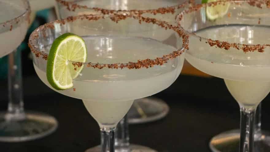 Prepare a pitcher of the classic tequila-infused margarita mix whose citrusy bite and acidic touch will sharply cut through the dense flavours of the cheese sauce lathered on top of the nachos. A fresh salsa made from guacamole, chopped onions and tomatoes will bring a brightness into the small bites. Nachos will add an audibly crunchy texture that complements the zesty touch of the margarita cocktail. This is an excellent pairing for trivia night or charades when it is possible to actually dip your hands into the small bites platter.