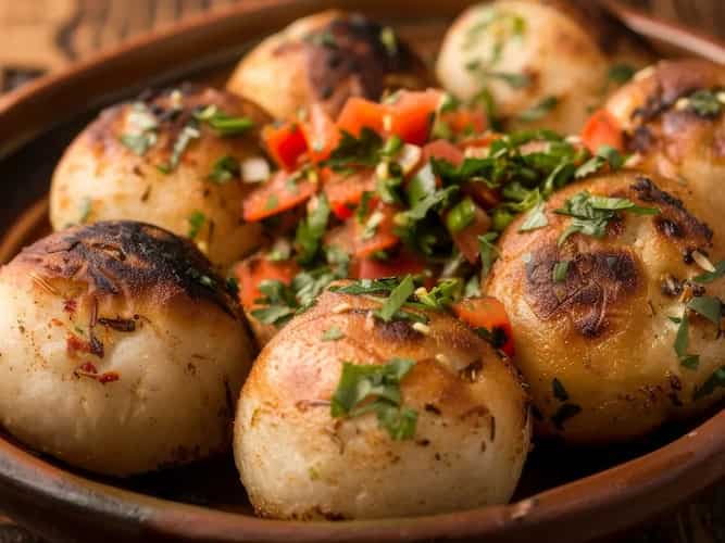 Maida litti chokha differs from the wheat-based version by offering a lighter, softer outer shell that absorbs flavour more readily. The texture becomes smoother, and the filling tastes slightly richer because maida allows the inside to stay more tender. This variation suits people who prefer a delicate bite instead of the rustic chew of whole wheat. The classic roasted gram filling develops a balanced taste here since the dough does not dominate the flavour. When paired with chokha, especially tomato or mixed vegetable versions, the contrast stays pleasant and easy to enjoy.
