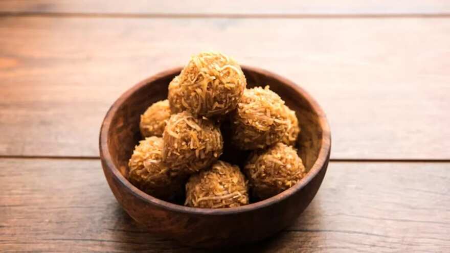 If you are looking for dairy-free dessert options, these bite-sized laddoos are a great option. These ladoos are prepared by using grated coconut, jaggery, and cardamom in place of milk or ghee. The texture of these ladoos is moist and chewy, whereas the taste gets a caramel-like flavour from jaggery with the nuttiness of coconut. Gently roasted for aroma, these laddoos are melt-in-the-mouth and wholesome. A perfect vegan option, coconut jaggery ladoo makes the ideal sweet end to any meal, which is simple, pure, and full of pleasure, satisfying cravings without compromising on taste.