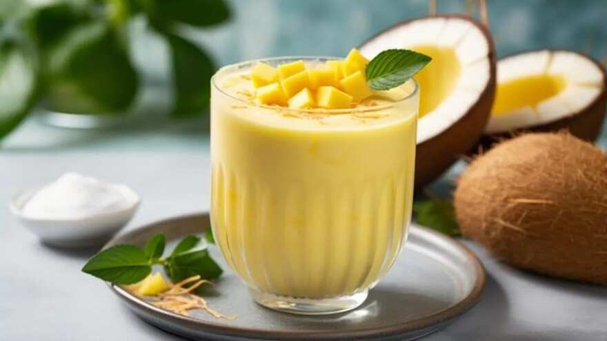 An absolute tropical delight prepared with ripe mangoes, coconut milk, and a splash of orange juice, this smoothie is velvety and slightly frothy in texture. The taste has an excellent balance of tangy, sweet, and creamy notes with a slight coconut aroma. Its thick consistency makes it feel indulgent but still light. Rich in vitamin C as well as healthy fats, it boosts hydration, energy, and skin glow. It is perfect for hot mornings or as a post-workout refuel.
