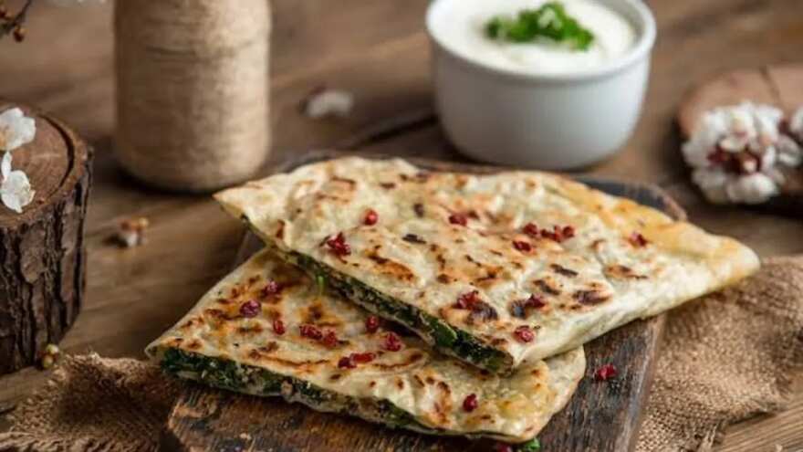 This variation works well for those looking for a slightly healthier version. The dough is made using a mix of wheat flour and jowar or ragi flour. The filling is based on the Greek combination of spinach and feta cheese. To prepare the filling, fresh spinach is wilted in a pan and combined with crumbled feta, chopped onion, black pepper, and a pinch of nutmeg. The slightly salty and tangy taste of feta balances the earthy flavour of the flour mix. This paratha is lighter than others and is usually eaten with plain curd or lemon pickle. Because the filling contains cheese that does not melt easily, the paratha keeps its shape and can be made thin without tearing. This version is popular among those who enjoy trying Mediterranean flavours without changing Indian cooking methods.