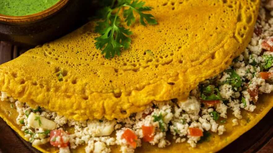 Oats chilla is a healthy, fibre-rich breakfast option. Ground oats are mixed with yoghurt or water, a blend of spices and herbs that gives a slightly nutty, wholesome flavour. The texture is soft but thick, delivering a hearty bite. Packed with fibre, it helps in digestion and keeps you full until lunch. You can also make it more filling by adding some grated carrots, spinach, or peas to it. Light, healthy, and easy to prepare, oats chilla is a perfect breakfast option for those who are looking to add taste with health.