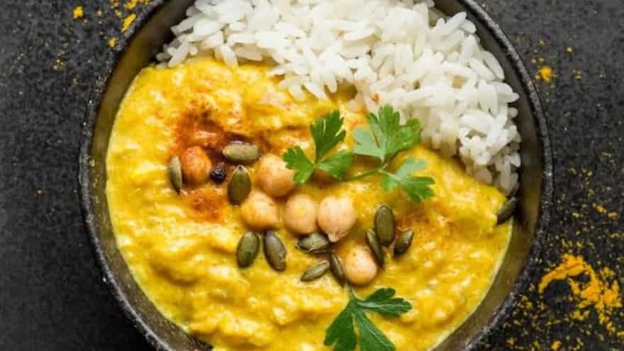 4. Stir well to ensure the yellow hue of the turmeric spreads evenly. Serve chilled or at room temperature with hot garlic naan or steamed rice.