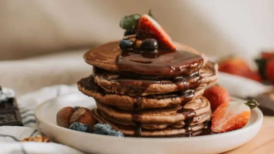 If you have a sweet tooth and kids who would rather have desserts for every single meal, chocolate chip pancakes are your go-to option. These pancakes are studded with chocolate chips, creating pockets of fudgy, melted chocolate goodness in every bite. A drizzle of chocolate sauce and a dusting of powdered sugar take these pancakes to the next level. They can be your once-in-a-while treat, kind of a breakfast. You can also turn it into double chocolate chip pancakes. They are a dream come true. This recipe takes the chocolate chip pancakes to the next level by incorporating cocoa powder into the batter, resulting in an extra-rich and decadent flavour.