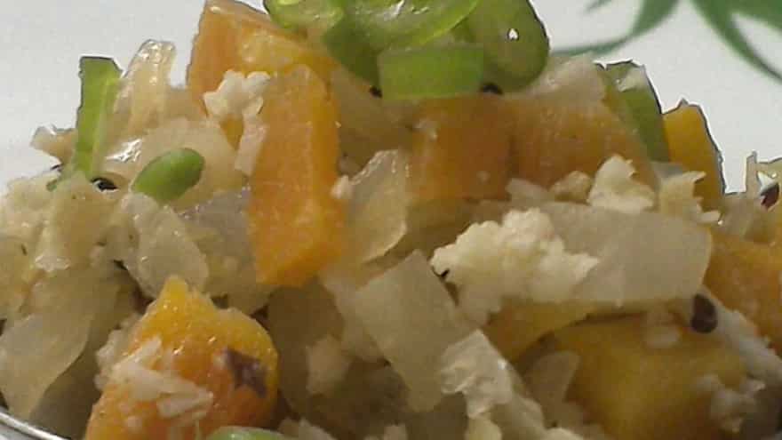 Cabbage poriyal is a lightly spiced, sautéed, and steamed cabbage recipe from South Indian cuisine. It is an excellent vegan side dish that pairs well with sambar, rasam, or any South Indian meal. To prepare, mustard seeds, urad dal, and curry leaves are tempered in sesame oil. Chopped cabbage is then added, along with green chillies and turmeric powder. Grated fresh coconut and chopped coriander leaves are added to the meal after steaming with a bit of water, giving it a touch of sweetness and freshness. In addition to being a mainstay in many South Indian homes, this dish's simplicity and deliciousness make it a healthy choice.