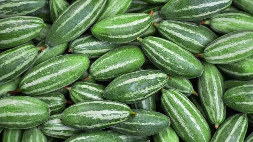 Pointed gourd, known as parwal or potol, is a cylindrical vegetable with a green skin and a pointed tip. It is commonly used in North Indian cuisine, especially in states like Uttar Pradesh and West Bengal. Parwal has a mild, delicate flavour and a firm texture. It is often stuffed with spices, ground meat, or paneer (Indian cottage cheese) and cooked until tender. Parwal curry, where the gourds are simmered in a flavourful gravy, is another popular preparation. This vegetable is not only delicious but also a good source of vitamins A and C, as well as dietary fiber.