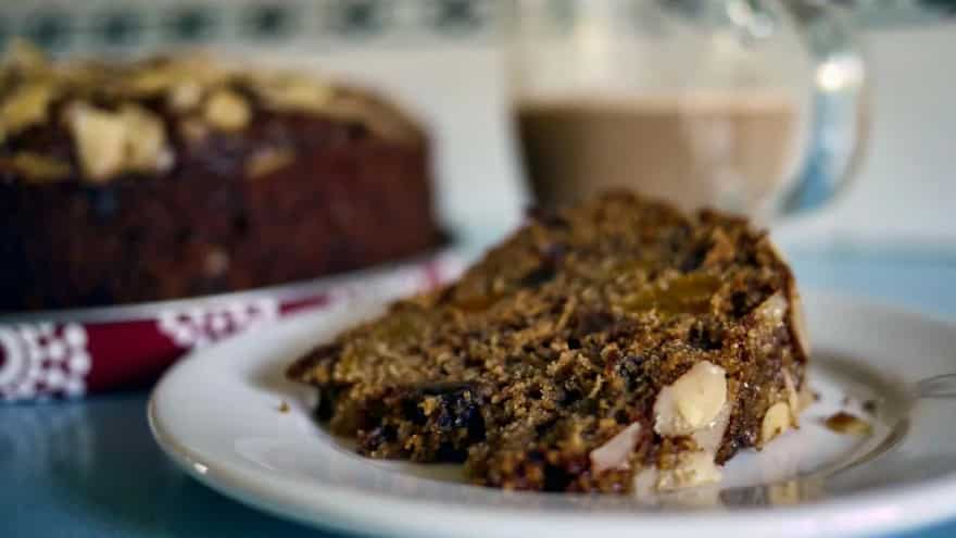 Fresh coconut mixed with molten jaggery forms the core of this batter, and the warm mixture is folded into eggs, flour and cardamom before soaked raisins are added for depth. The cake bakes slowly until the jaggery darkens into a natural caramel shade, and the texture remains moist through the festive week, which makes it suitable for early preparation.