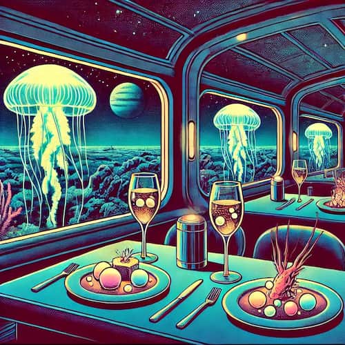 HUNGRY, TRAVELLER? Whether you’re refuelling at a Martian colony or feasting under the neon skies of Titan, the universe offers an endless menu of cosmic delights. From asteroid-based noodle bars to Europa’s best bioluminescent seafood, here’s your ultimate guide to dining across the stars.