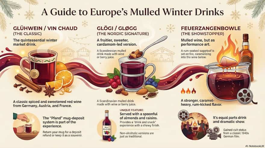 - Key ingredients: Spiced red wine, sugar loaf (Zuckerhut), high-proof rum