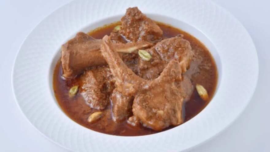 The use of nuts in gravies, particularly almonds, has long been associated with Parsi festive cooking, where richness and depth are prized. For this dish, soak ½ cup almonds in hot water for 15 minutes, peel them and grind them into a smooth paste with a splash of water. Heat 3 tablespoons oil in a heavy-bottomed pan, sauté 2 finely sliced onions until deeply golden, then add 1 tablespoon ginger-garlic paste, 1 teaspoon red chilli powder, ½ teaspoon turmeric, 1 teaspoon cumin–coriander powder, and a pinch of garam masala. Add 800 grams mutton, browning the pieces well. Pour in 1½ cups water, stir in the almond paste, season with 1–1½ teaspoons salt, cover and simmer for 45–60 minutes (or pressure-cook) until the meat softens and the gravy thickens into a smooth, creamy base. Garnish with coriander. The result is a rich, indulgent dish worthy of a festive holiday table.