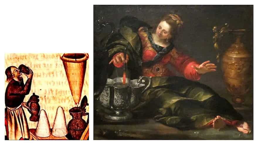 In The Merchant’s Tale from Geoffrey Chaucer’s Canterbury Tales (1392), the wealthy, elderly knight January takes “ypocras, clarre, and vernage / Of spices hote, to encrese his corrage” (hypocras, clary, and vernage / of spices hot to increase his courage). January sups these three types of spiced wine to boost his virility on his wedding night for his young bride, May.